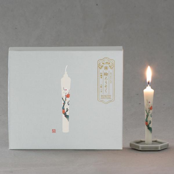絵ろうそく ギフト 白梅 6本入り 蜜蝋入り 贈答用 ローソク 進物 贈り物 高級感 お供え お盆 お彼岸 貼り箱 金箔 モダン 高級 美しい 梅の絵 和ろうそく 型