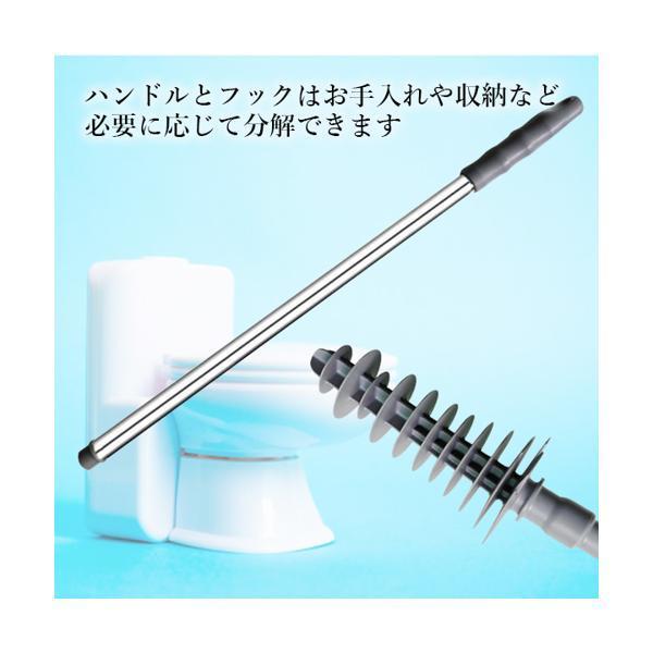 ・柔軟な長いヘッドはトイレのパイプの奥深くまで挿入でき、自由にを曲げられるので効果的にトイレのつまりを解消できます。