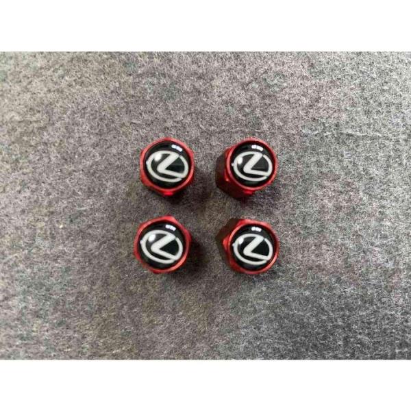 送料無料 409★LEXUS レクサス用★4個セット 車のタイヤバルブキャップカバー レッド エアバルブキャップ 六角形 ホイール