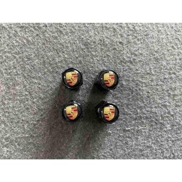 送料無料 422★PORSCHE ポルシェ用★4個セット 車のタイヤバルブキャップカバー ブラック エアバルブキャップ 六角形 ホイール