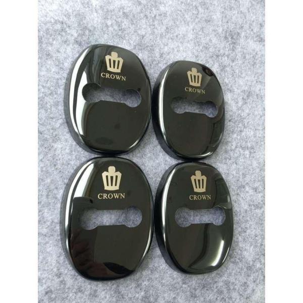 送料無料 クラウン用★4枚セット ステンレス製 車のドアロックストライカーカバー ブラック 装飾カバー部品 専用ロゴ入り 軽量