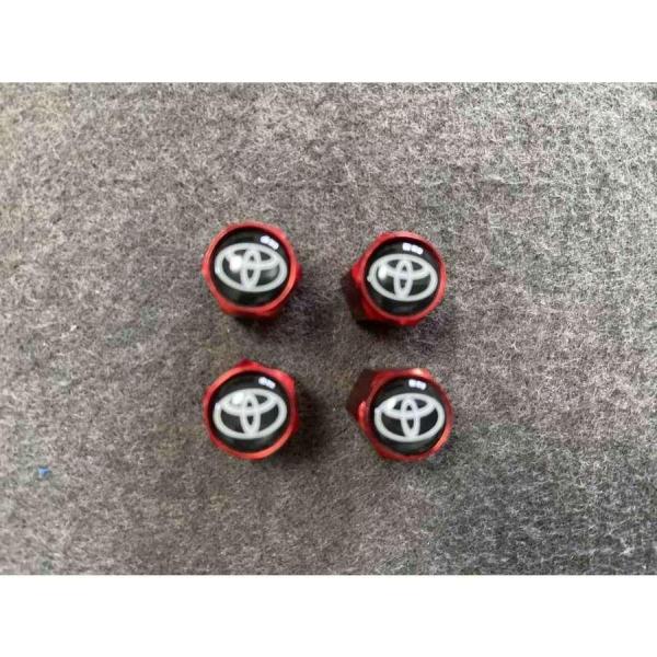 送料無料 404★TOYOTA トヨタ用★4個セット 車のタイヤバルブキャップカバー レッド エアバルブキャップ 六角形 ホイール