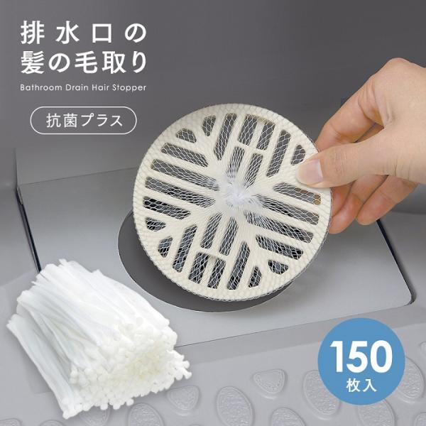 お風呂の髪の毛取り ネットタイプ 150枚入 抗菌プラス 髪の毛 ヘア キャッチャー 使い捨て 排水溝 ネット ゴミ受け お風呂 排水口 掃除 髪の毛取り シート 浴室