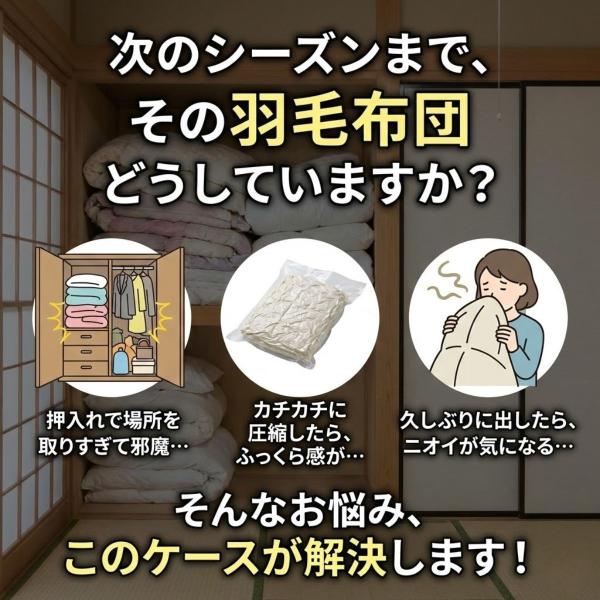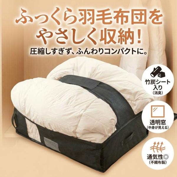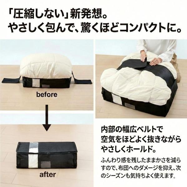 圧縮しすぎずふんわり収納:デリケートな羽毛布団もつぶさず、形を保ったまま収納できます。