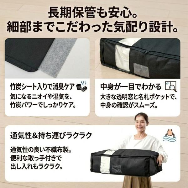 シングル布団 収納ケース 竹炭 消臭 中が見える 透明窓付き