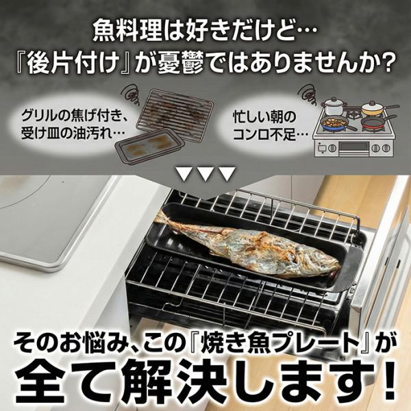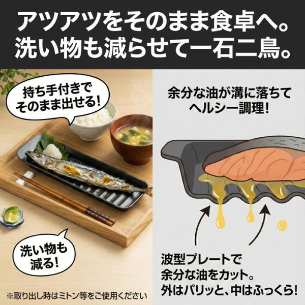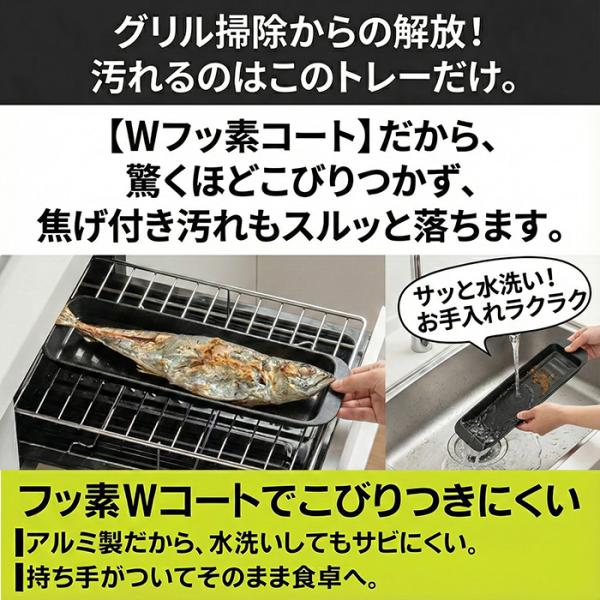 縦長 お魚2枚並べて同時調理 こびりつきにくい グリルトレー