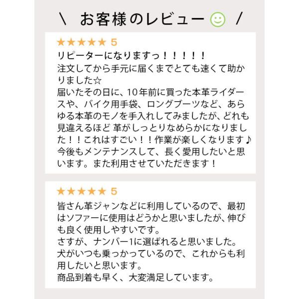 柔軟・長持ち・保護・ツヤ出し、撥水効果もあるので雨の日も安心!
