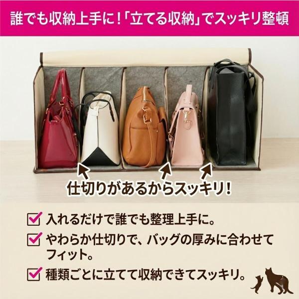 仕切り付きで整理整頓:バッグが倒れにくく、種類ごとに立てて収納できてスッキリ。