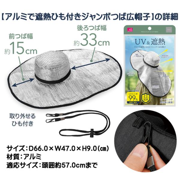 アルミで遮熱 ひも付き ジャンボ つば広帽子 / アルミ遮熱 ビッグ つば広帽子 紐付き / 日よけ帽子 日傘帽子 / つばひろぼうし