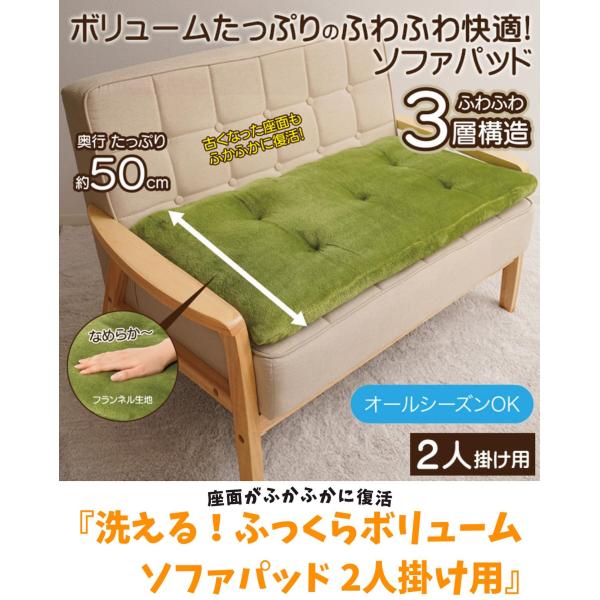 洗える ソファパッド 2人掛け用 50×100cm 厚み5cm ソファー パッド ふわふわ ソファ 用 シート クッション ロング 長い パット 長座布団 マット カバー 2人