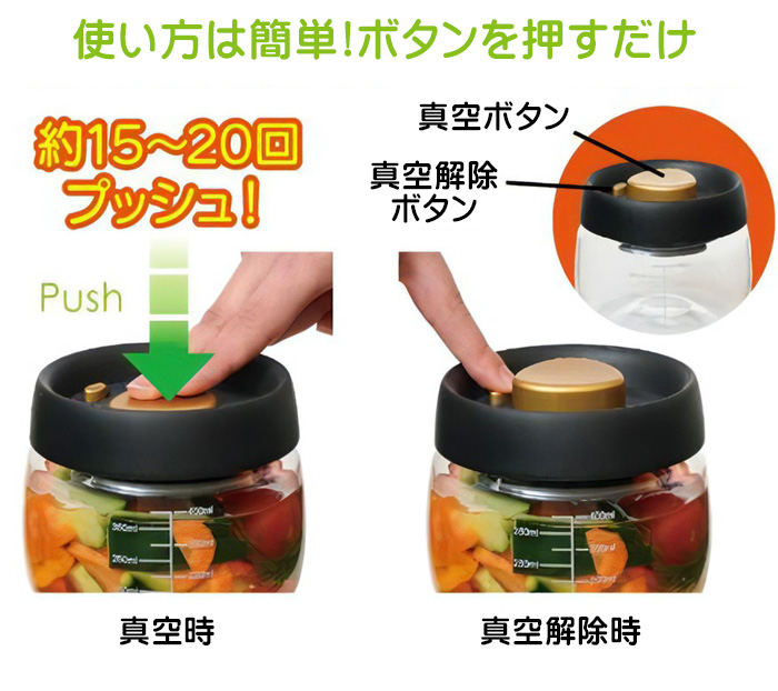 簡単プッシュで真空保存!