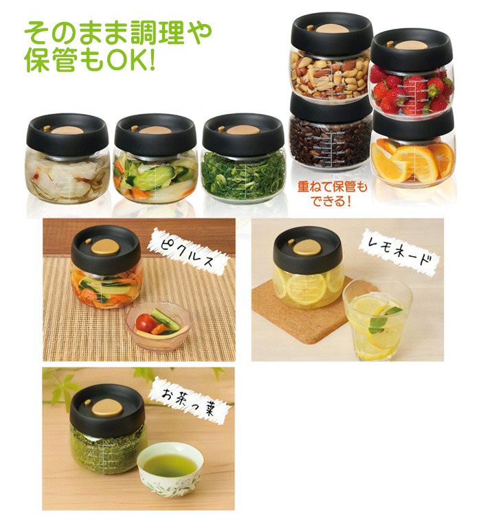 コーヒー豆の収納にも 真空ポット 小 プッシュで時短 約400mL 食品 長期 保存 真空 保存容器 ピクルス 漬物 入れ 容器 作り置き 調理 キャニスター 瓶 ケース