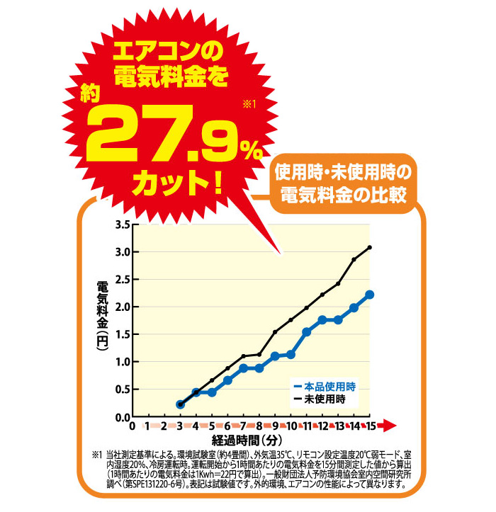 エアコンの電気料金の節約に大活躍!約27.9%もカット!
