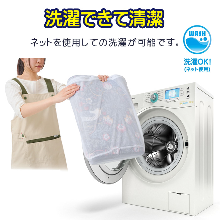 裏面は滑り止め加工が施されており、料理中の動作も安心。そして何より、洗濯ネットに入れて洗濯機で丸洗いOK。汚れてもサッとお手入れできるから、清潔感も保てて家事のストレスも軽減。