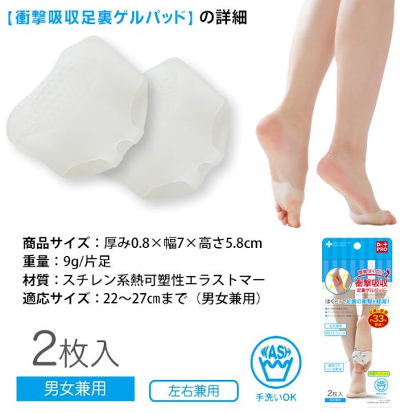 ドクタープロ 衝撃吸収 足裏ゲルパッド 洗える 足裏 クッション 男女兼用 痛み 歩行サポート ヒール ゲル パッド 疲れにくい 底マメ 対策 ズレにくい 立ち仕事