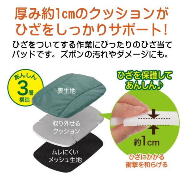 衝撃吸収 あんしんひざパッド 1セット(2枚組) 膝当て 作業用 ひざあて クッション 男女兼用 ニーパッド 膝あて 膝パッド サポーター ひざ保護 ズボン 汚れ防止