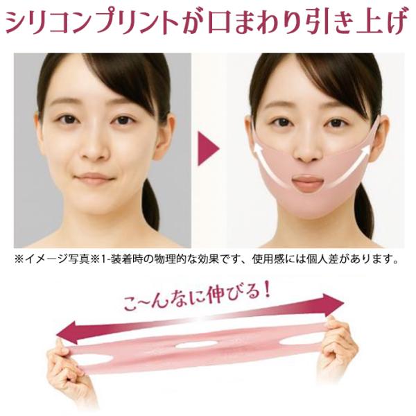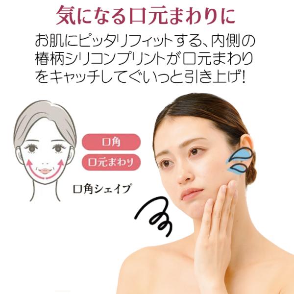 口元の悩みをぐいっとケア:シリコンプリントが気になる口元にしっかりフィットし、引き上げるようにサポートします。