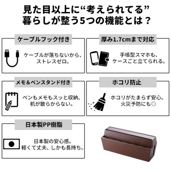 ・手帳型ケースなど、分厚いケースを取り付けた端末も置けます。(厚み17mmまで)
