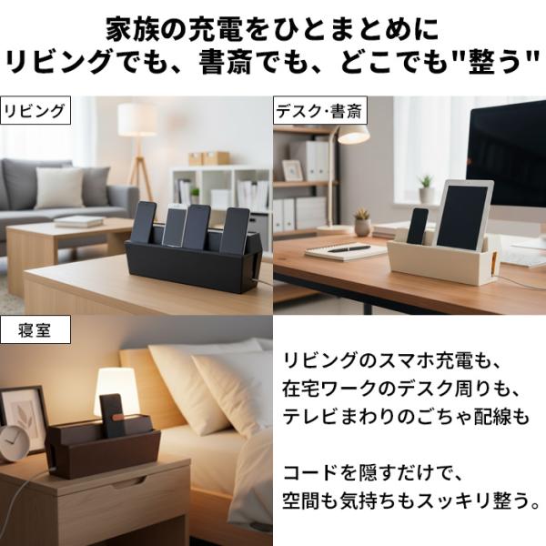 \シンプルで部屋になじむ/充電ステーション 充電 スタンド スマホ タブレット 携帯 ケーブル ボックス テーブル タップ 配線 収納 隠す カバー