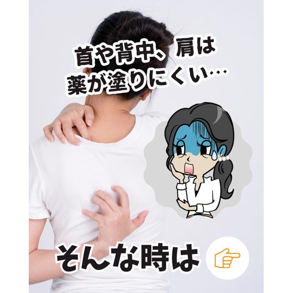 軟こうぬりちゃんは、背中などの手の届きにくい部位でも大丈夫。