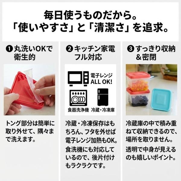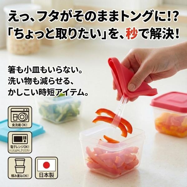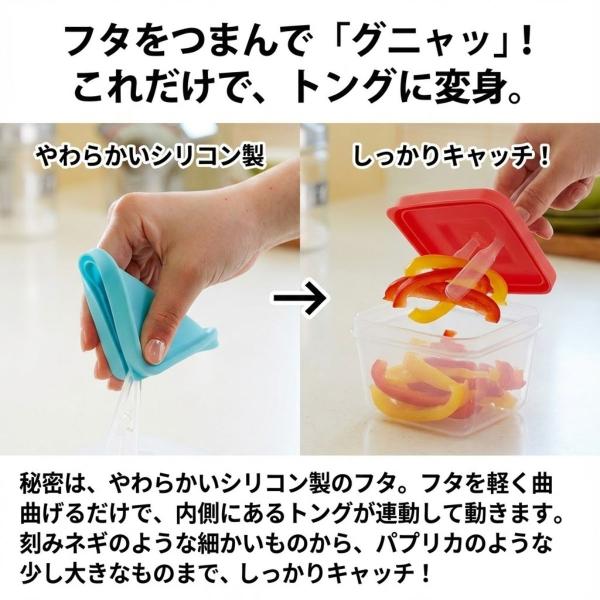 ふたがトングになる 保存容器 175ml トング付き 食品 保存 容器 ストック ケース パック 漬物 薬味 紅生姜 入れ レンジ 食洗機対応 角型 冷凍 日本製 定形外出荷