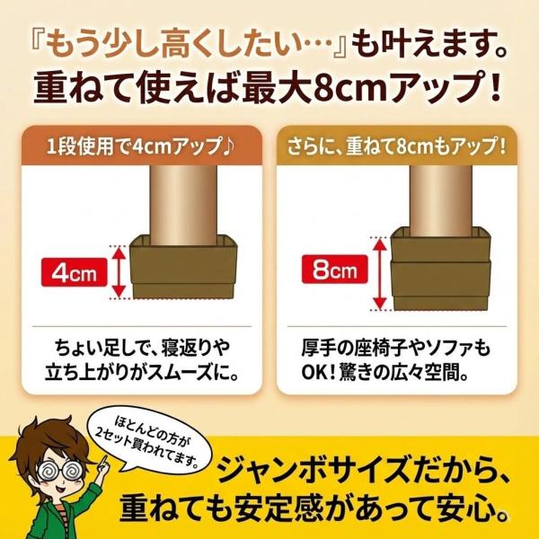 こたつの高さをあげる足 ジャンボ 4個入り ベージュ ブラウン テーブル 脚 高さ調節 コタツ 高さ調整 継ぎ足 底上げ 高くする 高さ 上げる 日本製
