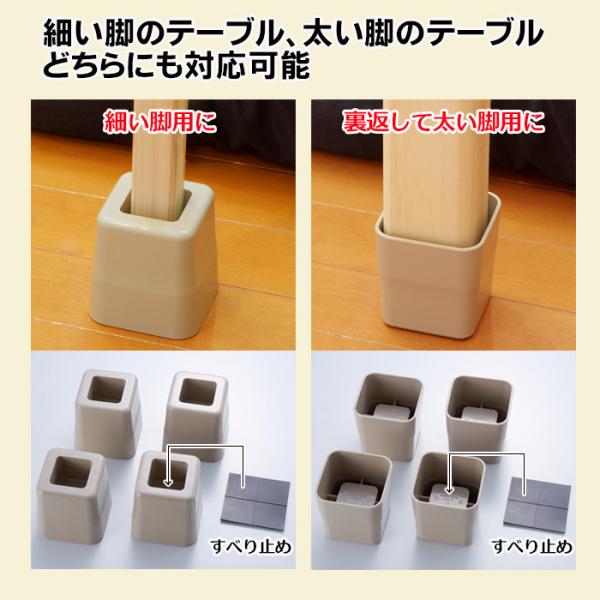 こたつの高さをあげる足 スリム 4個入 ベージュ ブラウン テーブル 細い 底上げ 脚 高さ 調節 コタツ 机 調整 継ぎ脚 高くする 高さを上げる 継ぎ足 嵩上げ