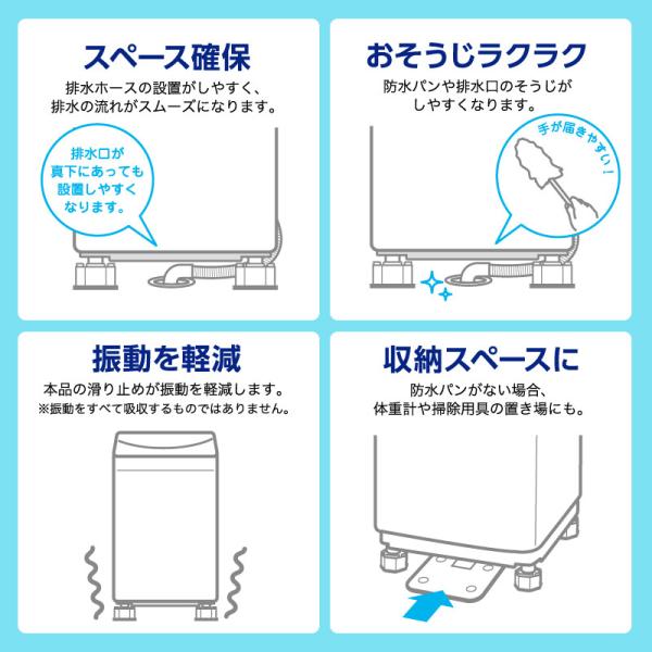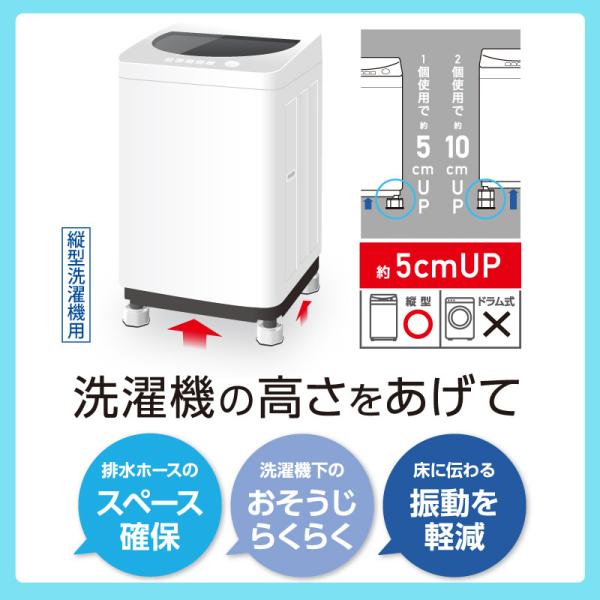 洗濯機の高さを上げる脚 縦型洗濯機用 4個入 かさ上げ台 防振 防音 洗濯機 置き台 底上げ台 高さ調節 高さ調整 脚継ぎ 継ぎ足 底上げ 高くする