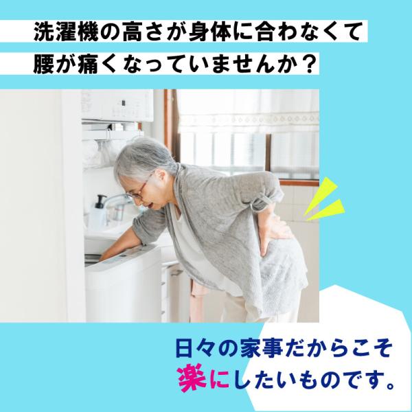 洗濯機の高さを上げる脚で楽な姿勢で洗濯