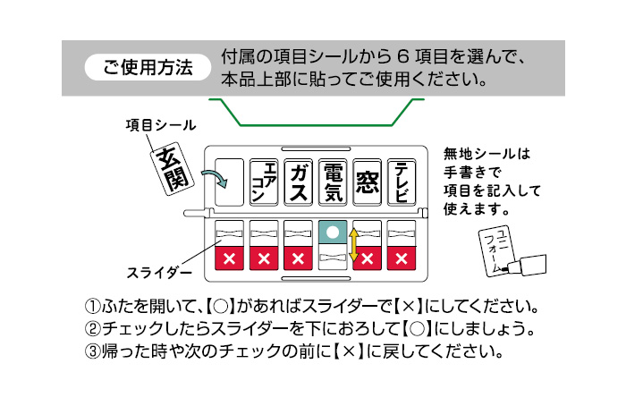 おでかけ チェッカー 外出 火の元 戸締り チェック リスト 確認 キーホルダー 忘れ物 点検 便利グッズ 持ち物 電気 ガス 消し忘れ 鍵 窓 閉め 忘れ 子供 高齢者