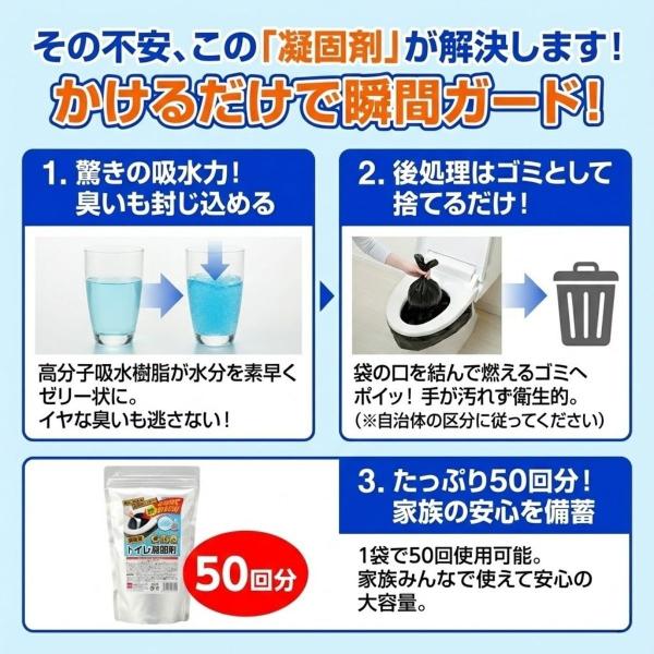 緊急用トイレ凝固剤 500g 50回分 コジット 簡易 トイレ 凝固剤のみ 非常用 災害用 緊急 防災 グッズ アウトドア 断水 地震 備蓄 持ち運び トイレ凝固 消臭 防臭