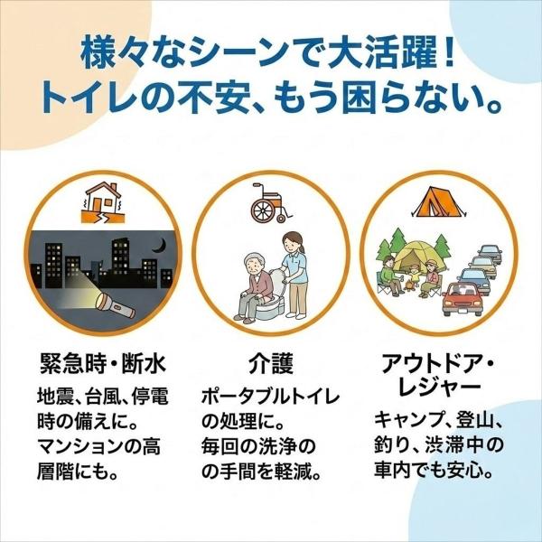 衛生的な環境を保ちながら、非常時の不便を大幅に軽減します。