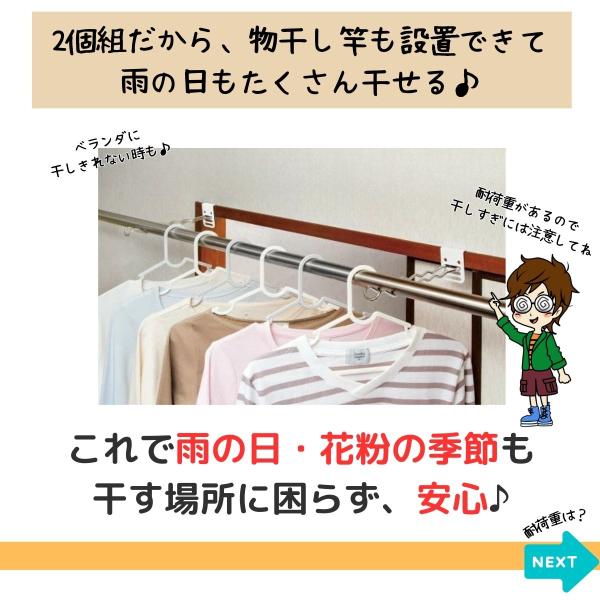 \めちゃ便利/付け外し簡単 室内 物干し掛け ロング 2個組 鴨居 扉枠 窓枠 物干し 竿受け 金具 室内 部屋 干し フック 雨の日 梅雨 花粉 対策 洗濯 便利 グッズ