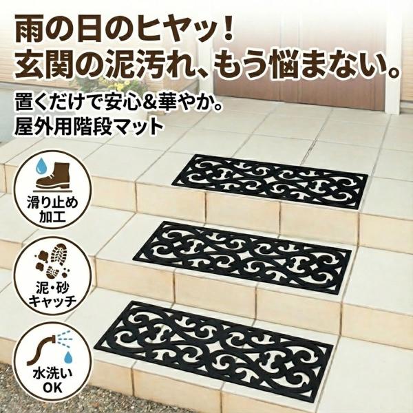 屋外用の階段マット ラバーマット 玄関 階段 マット 75×25cm おしゃれ 北欧柄 花柄 泥落とし 砂落とし ゴムマット 水洗い可 屋外マット 雨 雪 滑り止め