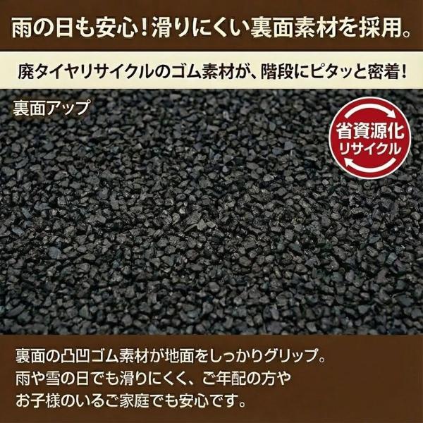 裏面は廃タイヤをリサイクルしたゴム素材なので雨の日の滑り止めにもなります。