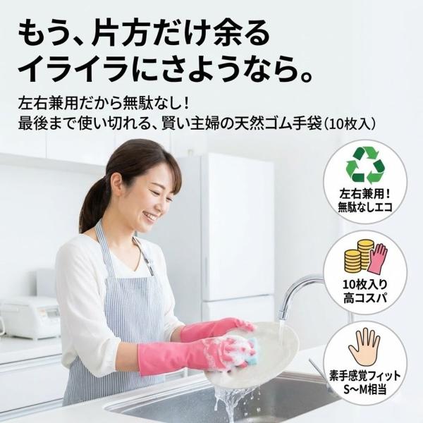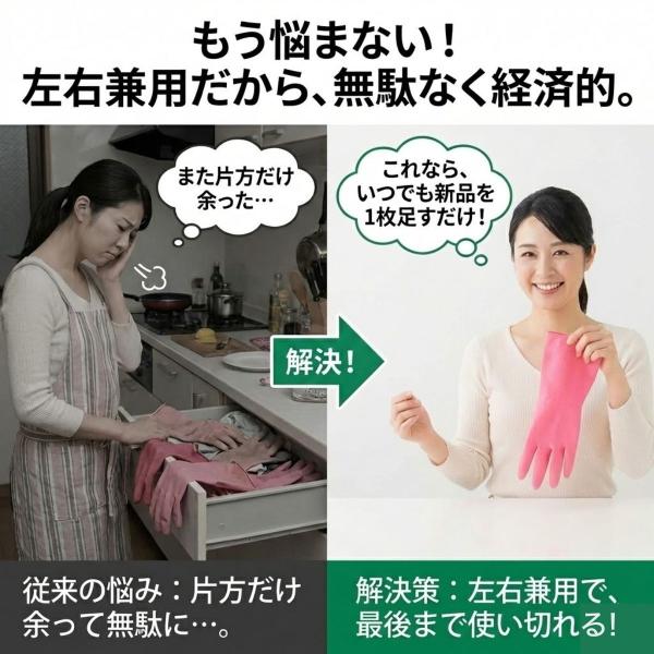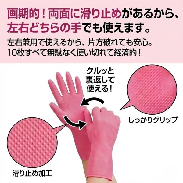 左右兼用 薄型 家庭用 ゴム手袋(10枚入り) / きっちん ごむてぶくろ / 右利き 左利き 両利き用 片方だけ余らない 経済的 ムダがない ビニール手袋 くり返し ゴム手 キッチン手袋 右のみ 左のみ
