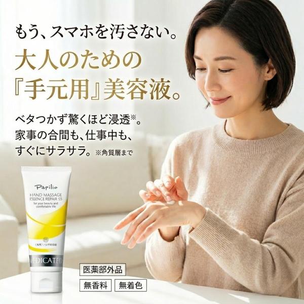 \プレゼントしたくなる/薬用 ハンドクリーム パピリオ ハンドマッサージエッセンス リペアSS 手荒れ ひび割れ 予防 べたつかない ハンドケア 高保湿 無香料