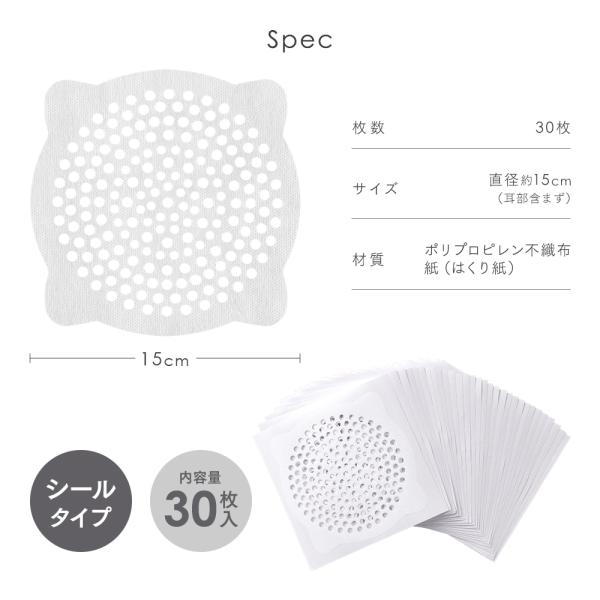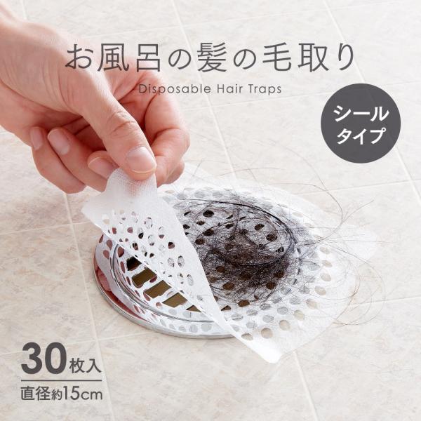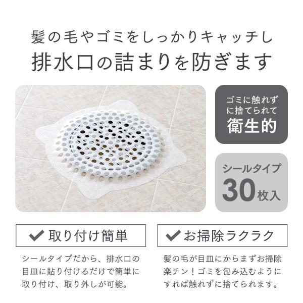 \剥がれず髪の毛をしっかりキャッチ/お風呂の髪の毛とりシールタイプ 30枚入 排水口 髪の毛 ネット 粘着 シート お風呂 掃除 排水溝の髪の毛取り 貼るだけ
