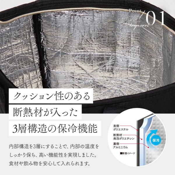 クッション性のある断熱材が入った3層構造の保冷機能付きなので冷たさをしっかりキープ!!