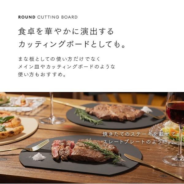 そのまま食卓にサーブしてもおしゃれな、D型のまないたです。