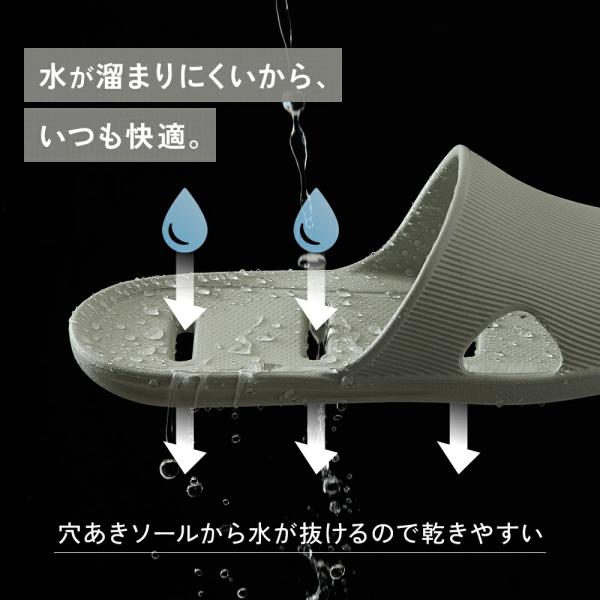 水はけがよく快適:穴あきソールだから雨水が溜まらず、すぐに乾きやすく衛生的です。