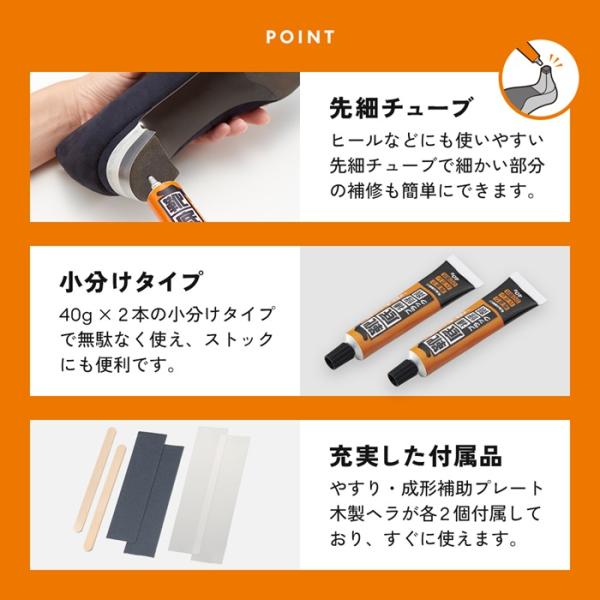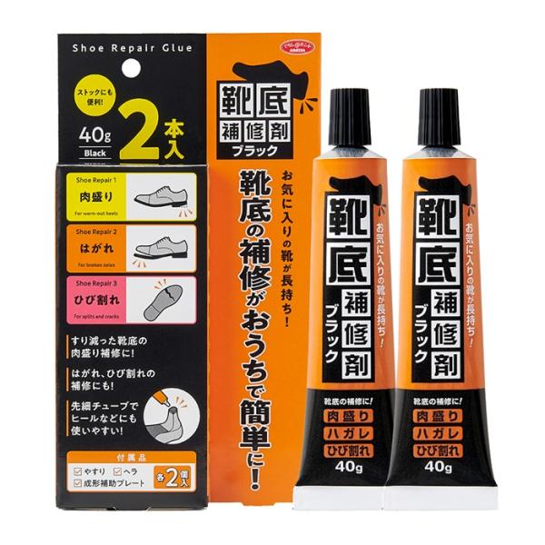 靴 かかと 修理 キット 補強 ソール ゴム 接着剤 自分で かかと直し 靴底 補修剤 40g×2本 ブラック すり減り 補修 ひび割れ 肉盛り ヒール 直す 靴の修理