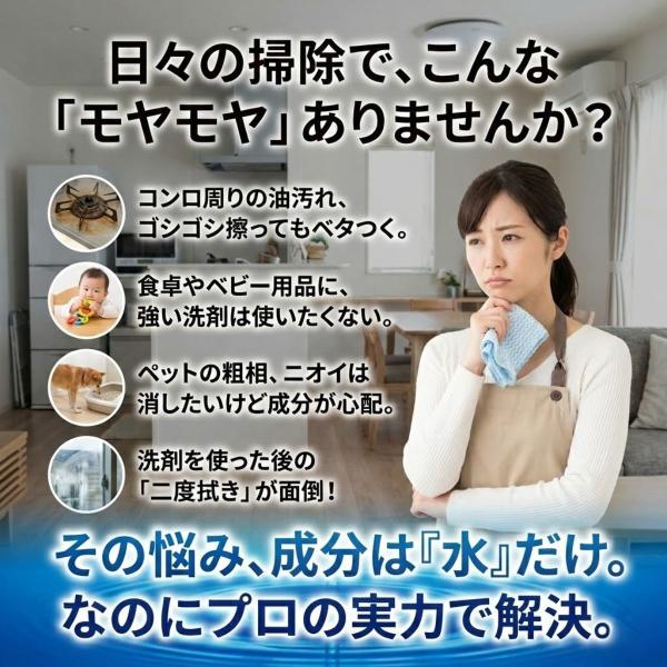 超電解水クリーンシュシュは、水から生まれた電解アルカリ水100%の万能クリーナー。