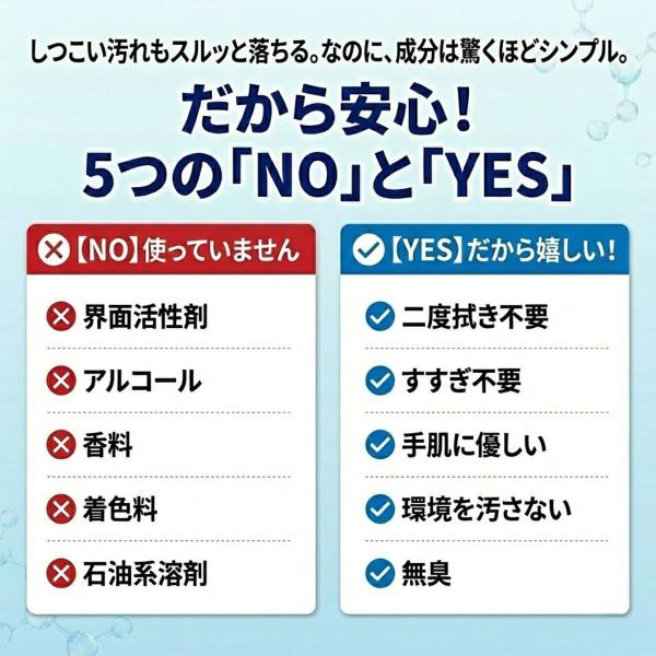 超電解水クリーンシュシュなら、においもなく、手にも優しく、安全で気持ちよくお掃除出来ます。