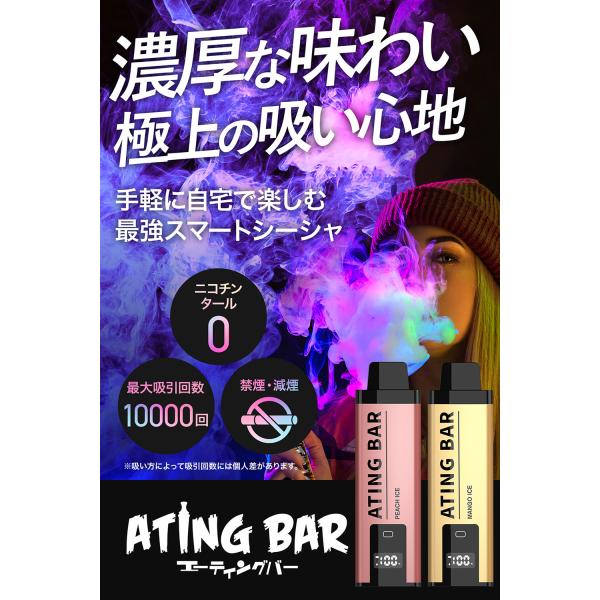 ポケット シーシャ エイティングバー 最大吸引 10000回 ATING BAR スマート 持ち運び 禁煙 減煙 節煙 対策 グッズ ニコチンゼロ ノンタール 使い捨て 電子べイプ