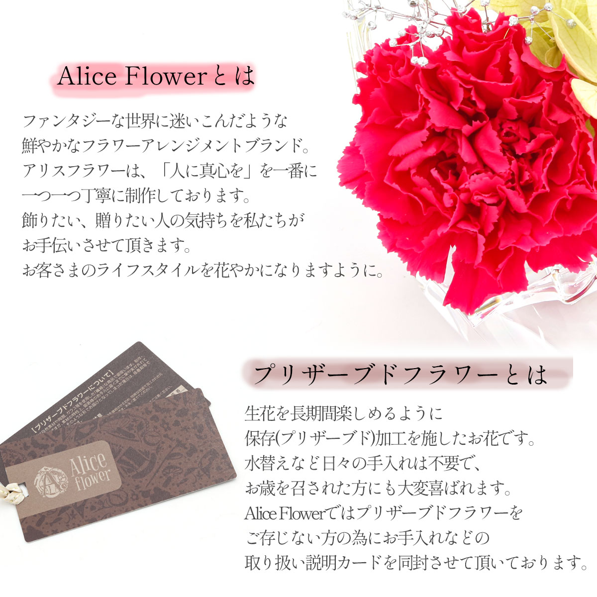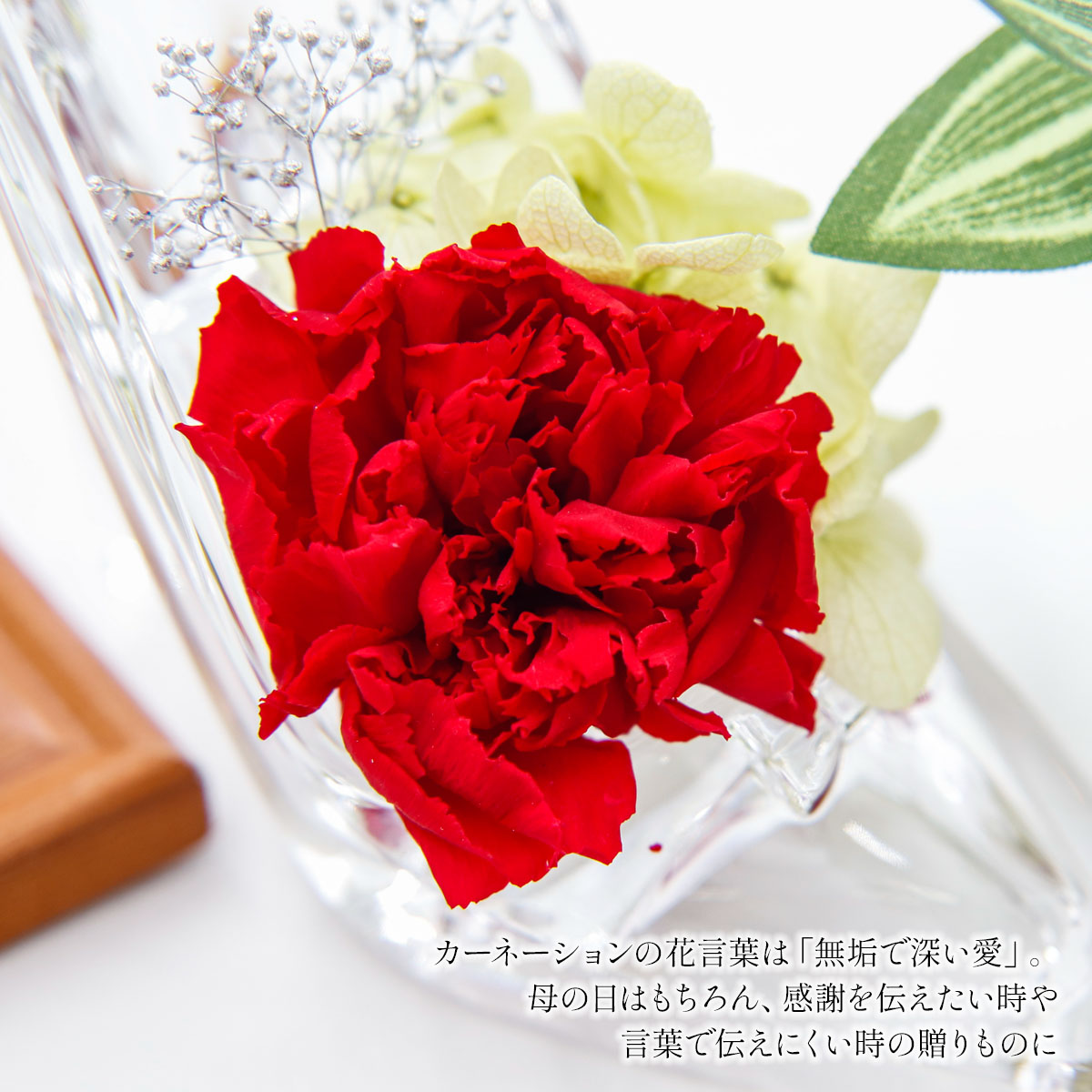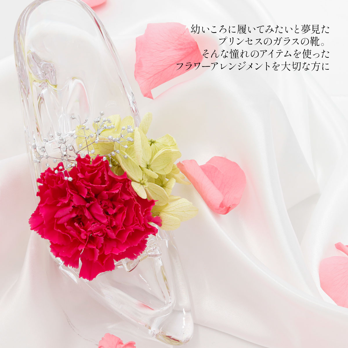 商品名:アリスフラワー ガラスの靴 カーネーション1輪アレンジ