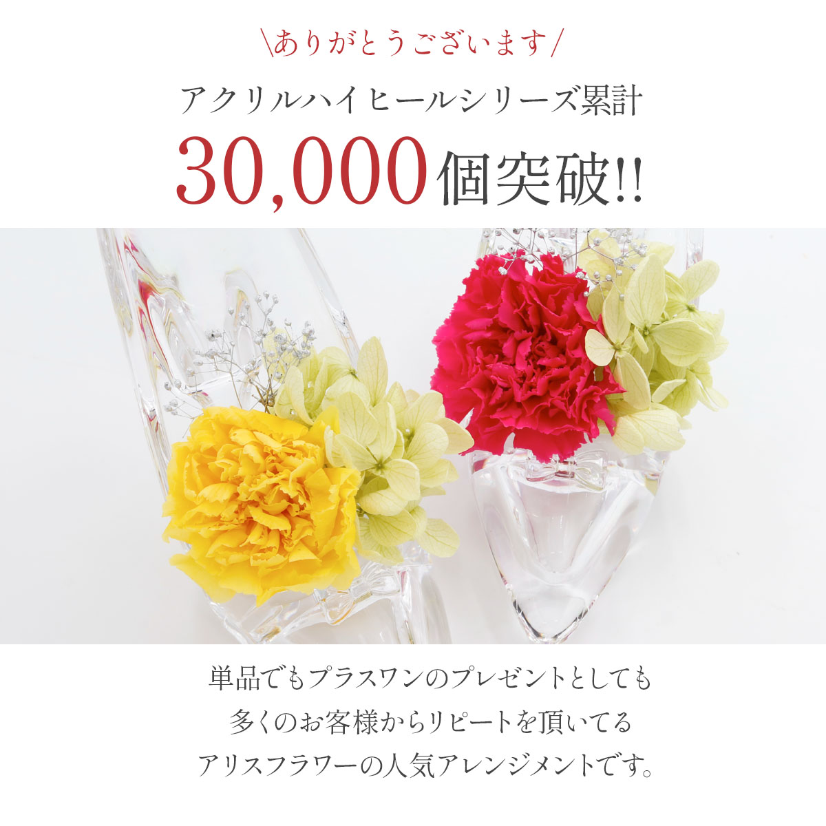素材:靴:アクリルハイヒール 花:プリザーブドフラワー ※一部アートフラワー(造花)使用