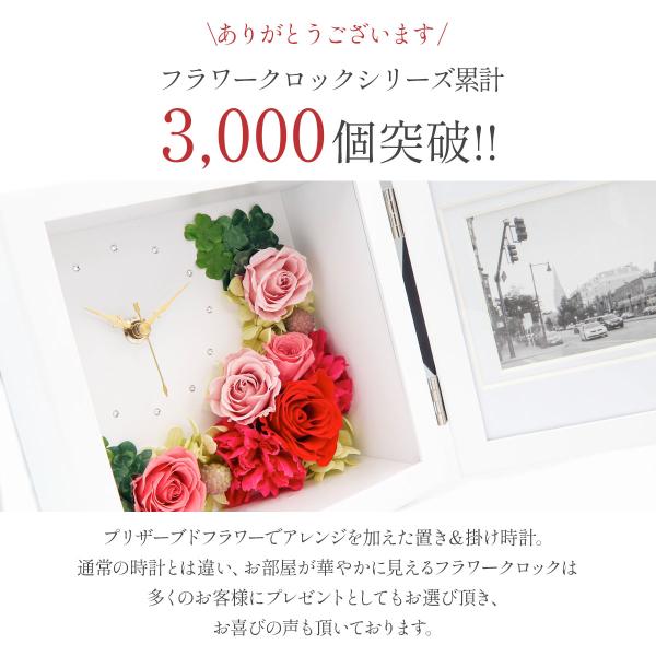 プレゼント 花 名入れ プリザーブドフラワー 写真立て 結婚祝い 時計 花時計 バラ フォトフレーム 誕生日 ギフト