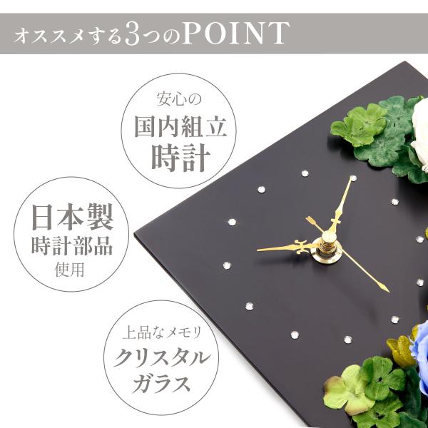 商品説明時計を華やかにするプリザーブドフラワーのアレンジメント。