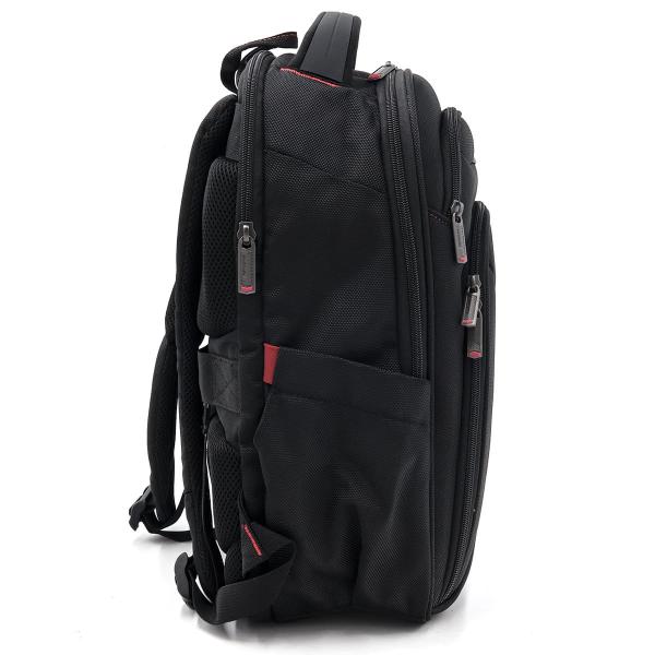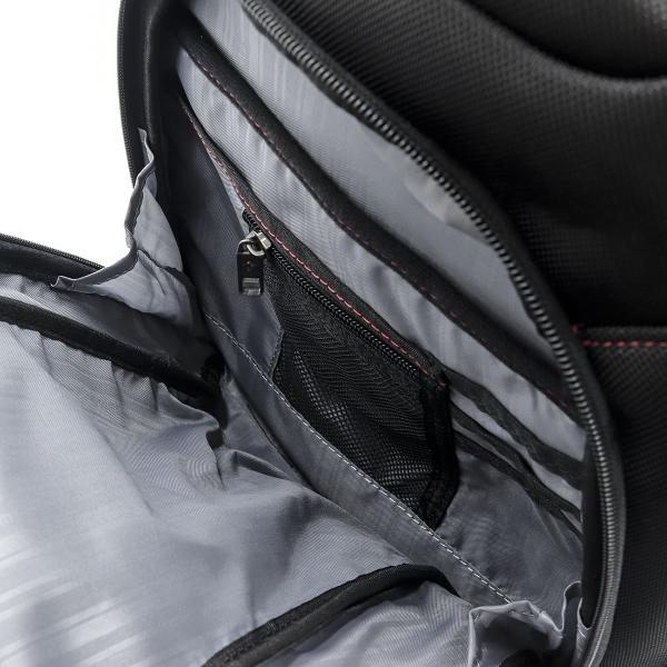 仕様:ダブルファスナー式開閉/内側:オープンポケット×2/外側:ファスナー式ラップトップポケット×1、ファスナー式オーガナイザーポケット×1(ファスナーポケット×1、オープンポケット×2、カードポケット×3、ペンポケット×2)、ファスナーポケット×1、オープンポケッ×2/スマートスリーブ